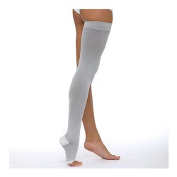 Чулки медицинские эластичные компрессионные, универсальные, без мыска предназначены для лечения, оздоровления и профилактики хронической венозной недостаточности, снятия синдрома «тяжелых ног» и отечности. Рекомендуется людям, которые вынуждены длительное время находиться на ногах. Также рекомендуются при варикозном расширении вен с поражением в сегменте голень-бедро. Силиконовая резинка без рисунка, для женщин и мужчин.